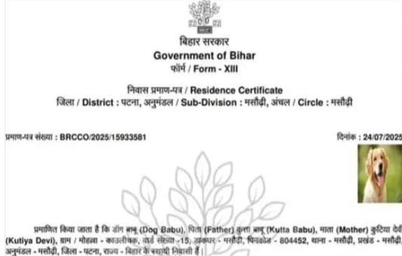 বিহারে এবার সরকারি ভাবে স্থায়ী বাসিন্দা হল এক সারমেয়। অবাক হলেন তো? না এটা রসিকতা নয়, এই মারাত্মক অভিযোগ তুললেন খোদ অভিষেক বন্দ্যোপাধ্যায়। আর এই স্থায়ী বসবাসকারীর শংসাপত্র যিনি পেলেন, তাঁর নাম ‘ডগ বাবু’। আর তাঁর পিতা ও মাতার যথাক্রমে ‘কুত্তা বাবু’ এবং মা ‘কুতিয়া দেবী’। আর এই ‘ডগ বাবু’ পাটনার কৌলিচকের ১৫ নম্বর ওয়ার্ডের বাসিন্দা। ওই সার্টিফিকেটে ছবি দেওয়া একটি কুকুরের। সম্প্রতি সোস্যাল মিডিয়ায় ভাইরাল সেই শংসাপত্র। এই ইস্যুতে নির্বাচন কমিশনকে তোপ তৃণমূল সাংসদ অভিষেক বন্দ্যোপাধ্যায়ের।সোমবার সংসদের বাদল অধিবেশনে যোগ দিতে দিল্লি যাওয়ার পথে সাংবাদিকদের মুখোমুখি হয়ে তিনি বলেন, “সাধারণ মানুষের নাম বাদ দিয়ে কুকুরের নামে রেসিডেন্সিয়াল সার্টিফিকেট দেওয়া হচ্ছে। এই রেসিডেন্সিয়াল সার্টিফিকেট এসআইআরের(SIR) ক্ষেত্রে কমিশন গ্রহণ করছে। সাধারণ মানুষের ভোটাধিকার ছিনিয়ে নিয়ে কুকুরের নামে ফেক ভোটার আইডি কার্ড করেছে যাতে ভোটলুট করে বিজেপিকে বাড়তি সুবিধা দেওয়া যায়। এই ঘটনা দিনের আলোর মতো পরিষ্কার।” নির্বাচন কমিশন ‘বিজেপির তল্পিবাহক’-এর মতো কাজ করছে বলেই কটাক্ষ করেন তৃণমূলের সাধারণ সম্পাদক। ‘ডগ বাবু’র রেসিডেন্সিয়াল সার্টিফিকেট নিয়ে বিহারেও চলছে জোর কাটাছেঁড়া।
